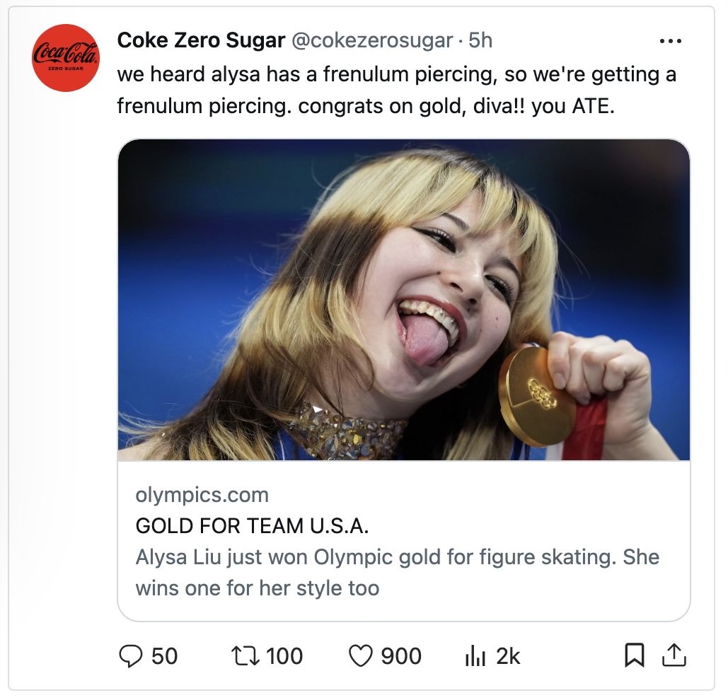 So we’re getting Coke Zero to show up everywhere Gen Z eats.