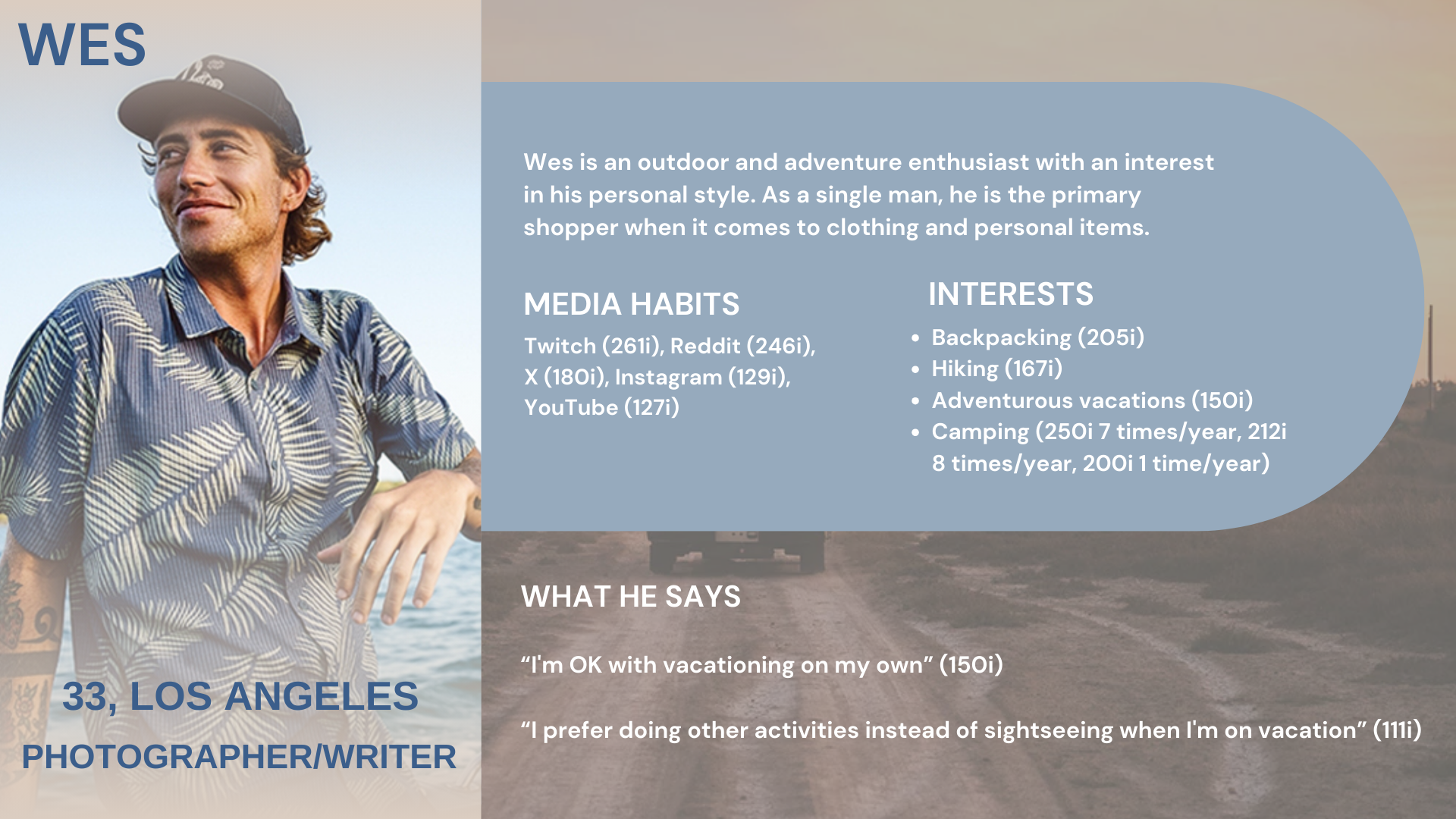 To understand Roark’s consumer, I created a lookalike persona and used MRI-Simmons to quantify his behaviors.